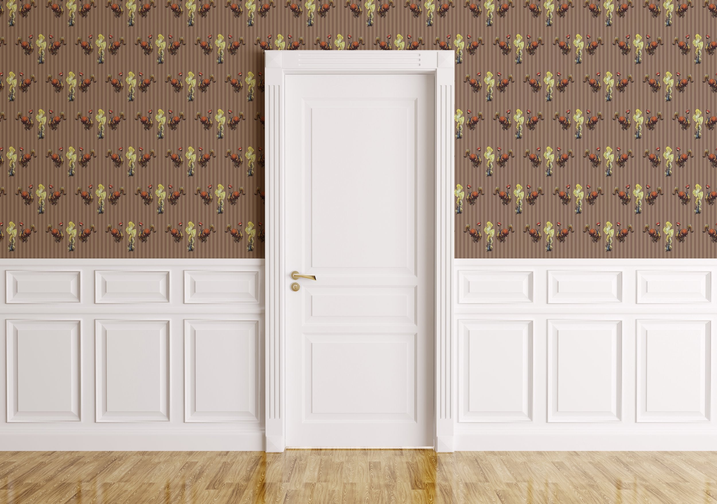 Tails Up is inspired by the colors of the traditional Thelwell wallpaper that was popular in the 1960s. This repeating pattern is a great enhancement to any room!